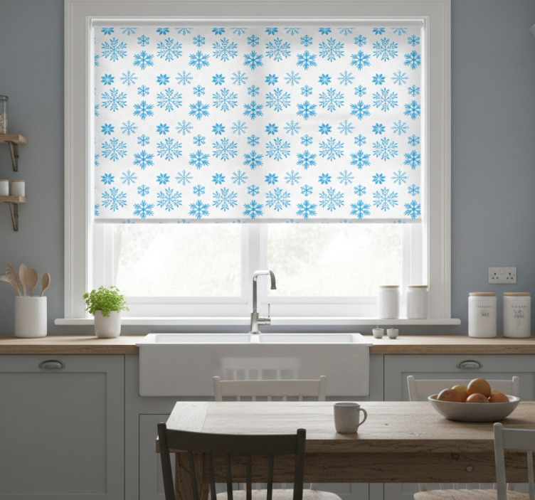 Snow crystal kitchen roller blind