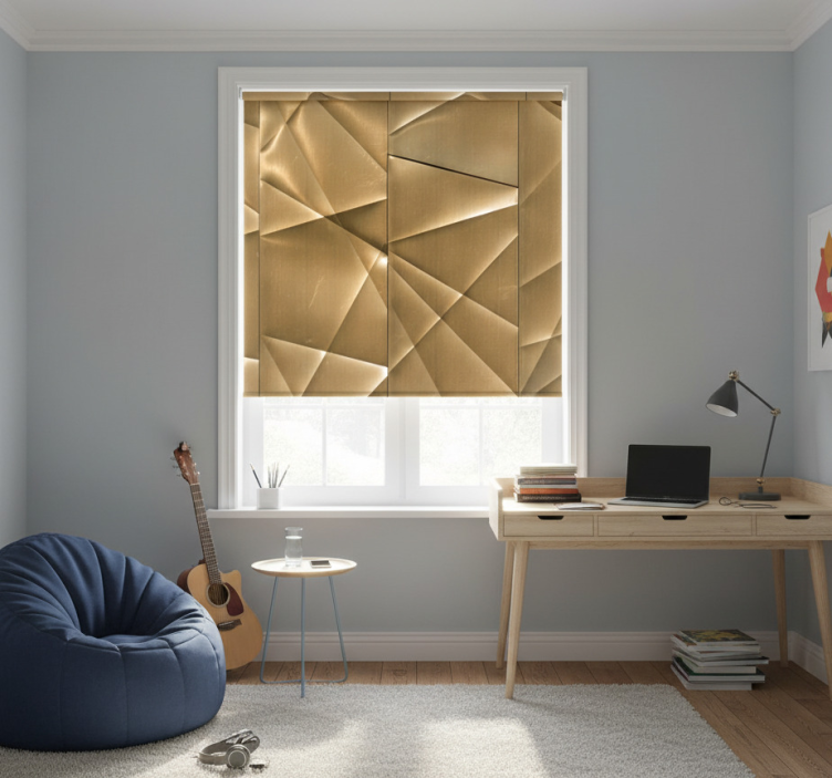 The Teenage bedroom roller blind 3d golden polygon design teenage bedroom roller blind is an ideal choice for decoration, bringing a fresh and vibrant look to your space! This roller blind not only protects your room from direct sunlight but also provides the perfect balance of privacy and light control. Imagine waking up in a room that reflects your unique style and personality while maintaining a cozy atmosphere! It’s time to unleash your creativity and enhance your bedroom decor with this striking roller blind.