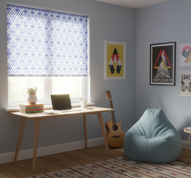 The Teenage bedroom roller blind in eclectic blue lines teenage bedroom roller blind is perfect for those looking to infuse personality into their room. Its striking design creates a lively atmosphere, inspiring creativity and comfort. This roller blind not only serves as a functional window treatment but also acts as a statement piece that reflects your teenager’s unique style. Elevate your decor and create a space that feels truly personal!