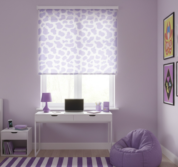 The Teenage bedroom roller blind purple cow pattern teenage bedroom roller blind is an inspiring choice for decorating any teenage space. This unique design not only enhances the aesthetics of a room but also reflects the personality and creativity of its occupant! Imagine brightening up a dull room with this fun and captivating pattern, instantly transforming it into a lively and inviting sanctuary!