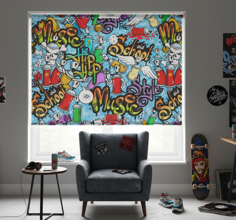 Reference: E7577Transform your space with our Teenage bedroom roller blind urban graffiti style! This vibrant design features stunning urban graffiti art that brings a pop of color and creativity to any teenage bedroom. The graphic elements are bold and energetic, making it the perfect addition for those looking to express their individuality. Enjoy easy assembly in just two clicks, effortless cleaning, and the ability to control light and privacy, all while enhancing your room's decor!