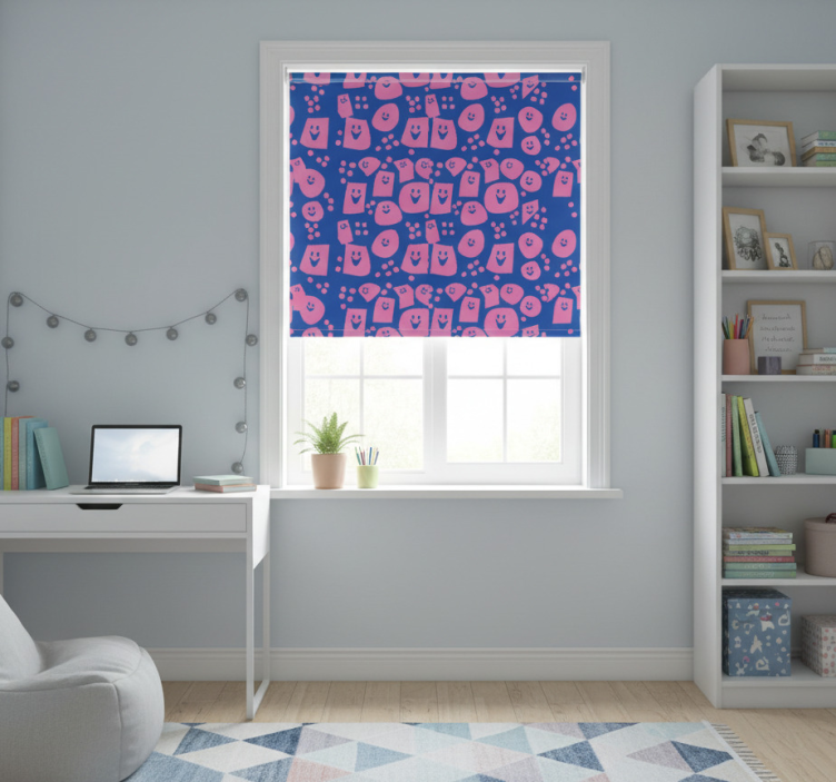 Teenage bedroom roller blind with geometric smiley faces