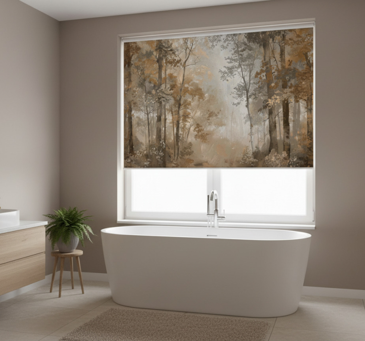 Reference: E6135Introducing our stunning Tree roller blind in amber autumn grove, a perfect blend of elegance and functionality! With its vibrant amber hues inspired by the beauty of fall, this roller blind gracefully enhances any space. The design features an exquisite autumn grove pattern that adds warmth and charm to your interiors. This product also boasts easy assembly in just two clicks, easy cleaning, and quick disassembly, making it a practical choice for modern living.