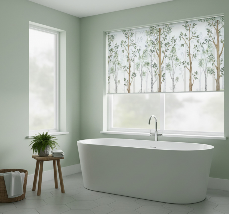 Reference: E6106Introducing our stunning Tree roller blind minimalist botanical design that beautifully combines elegance and functionality! This roller blind features a captivating botanical design with intricate leaf patterns, an easy assembly in just two clicks, and an effortless disassembly process. It's easy to clean, protects your room from direct sunlight, and provides privacy when lowered, all while allowing you to regulate the room temperature and enhance your home's decor.