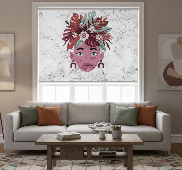 The White roller blind with modern woman and flowers design white roller blind is not just a window covering; it's a statement piece that enhances your interior decor. Imagine how this beautiful blind can transform your living space, filling it with personality and elegance. It effortlessly protects your room from direct sunlight while providing privacy when lowered, allowing you to enjoy your space in comfort. With its unique design, this roller blind encourages creativity in your home decor, inspiring a delightful ambiance that welcomes friends and family!