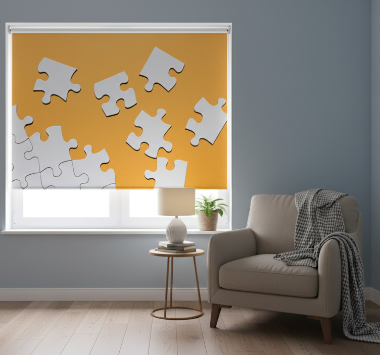 Yellow roller blind puzzle pieces wall mount