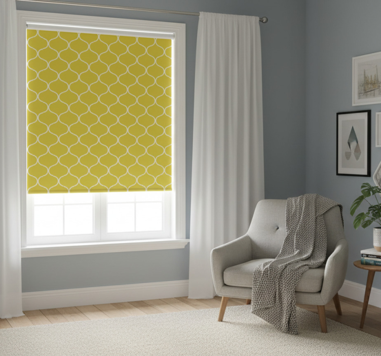 Yellow roller blind with geometric line design