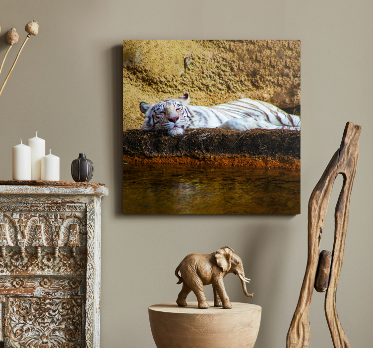 Immerse yourself in the serene beauty of nature with our stunning Animal canvas wall art sleeping white tiger. This exquisite piece features a majestic sleeping tiger, capturing the essence of wild animals in their natural habitat. The design radiates tranquility, showcasing the peaceful side of this powerful creature through breathtaking photography. Perfectly blending wilderness and artistry, this artwork invites you to appreciate the beauty of wildlife right in your home.