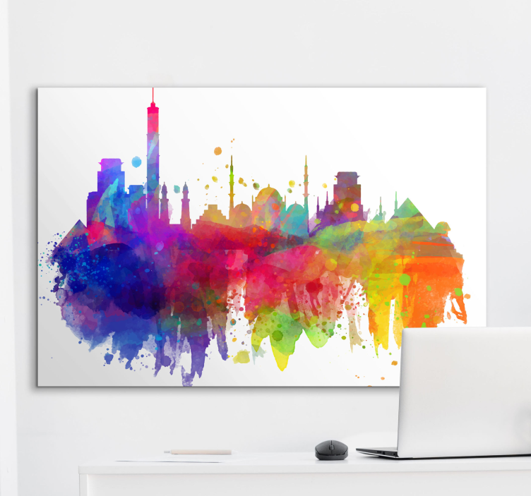 Immerse yourself in the vibrant world of our Cityscape wall art colorful urban skyline. This stunning design captures the essence of an energetic metropolis, showcasing an abstract portrayal of skyscrapers that dance across the canvas. With a splash of paint and a watercolor effect, this artwork bursts with color, bringing a lively atmosphere to any space. The artistic flair of this piece makes it a remarkable addition to your decor, evoking feelings of inspiration and creativity!