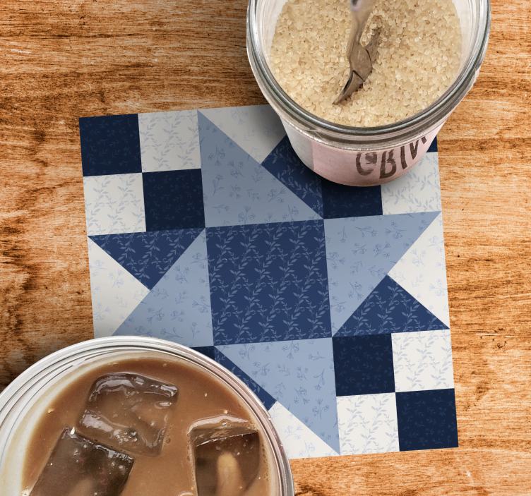 The Coaster with elegant floral star pattern showcases a stunning graphic design that beautifully blends a star motif with a floral patchwork. The blue geometric textures create a captivating visual experience, making it a perfect addition to any decor!