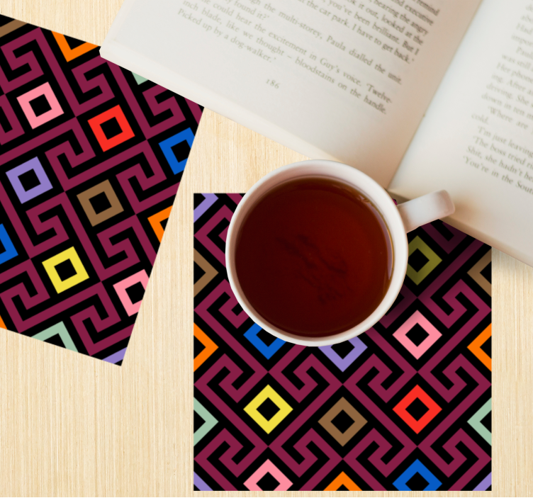 Introducing our Colorful geometric pattern coaster, designed to bring a bold and modern touch to your home! This coaster features an abstract and geometric design that captures the essence of creativity with its vibrant colors and intricate labyrinth patterns. The result is a visually stunning piece that not only protects your surfaces but also adds an artistic flair to any setting!
