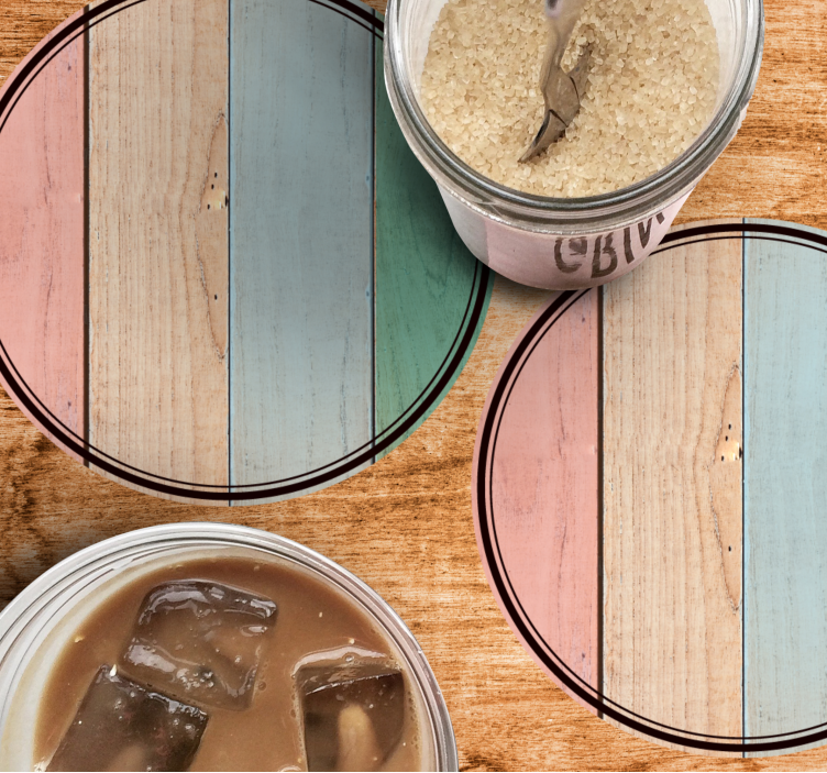 The Colorful wooden planks coaster features a stunning design that beautifully showcases a wood-effect texture combined with vibrant pastel colors. Each coaster presents a unique pattern that resembles natural wood planks, giving it a charming and inviting appearance. The round, circular shape adds a touch of elegance, making it not just a functional item but also a delightful piece of decor!