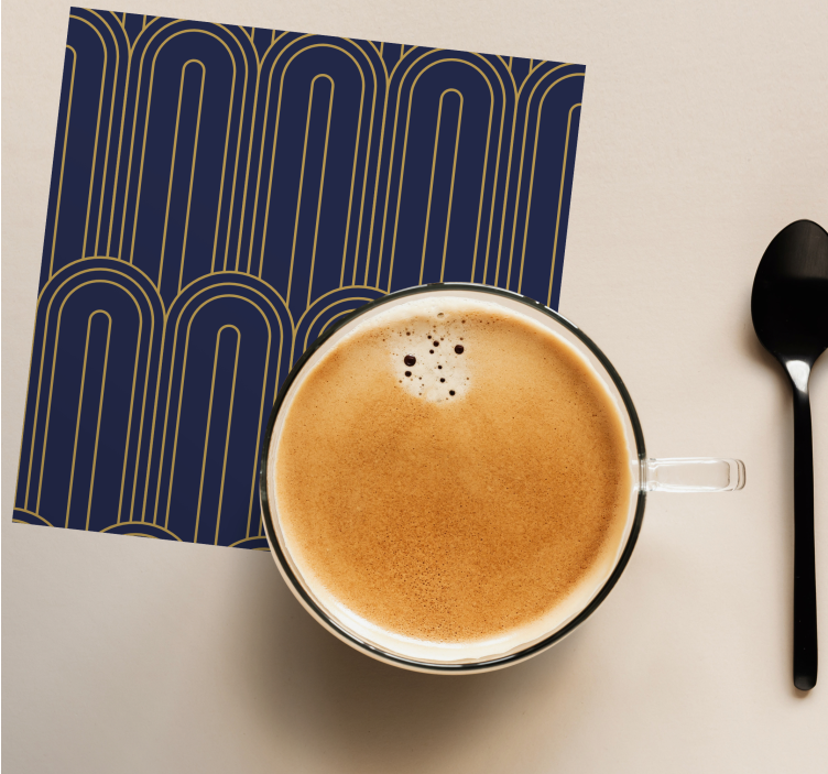 Introducing our stunning Curved lines pattern coaster, a true embodiment of modern design! This coaster features a captivating wave pattern in a rich navy blue hue, beautifully accented with gold accents. Its geometric and geometrical motifs bring a sophisticated touch to any setting, making it a perfect addition to your home decor.