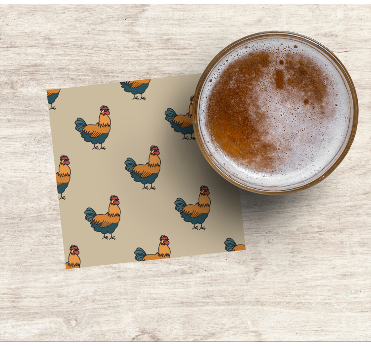 Enjoy your drink on this original drink coaster with chicken prints design. This Farm seamless pattern roaster modern coaster is perfect for adding a touch of farmhouse charm to your home. The coaster is made of high-quality materials that are highly resistant to external influences. Its lovely texture and vibrant colors will not fade over time. Choose from a variety of pack sets to find the one that suits your needs best and add it to your cart. With its durable construction and stylish design, this modern drink coaster is sure to enhance any table setting. Spice up your next gathering with this eye-catching coaster!