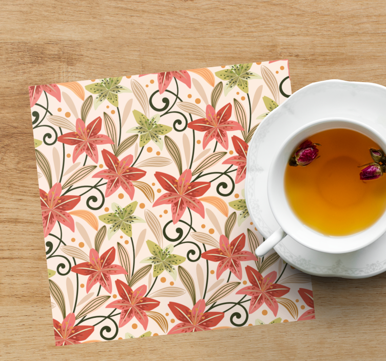 Introducing our Floral pattern accents coaster, a stunning piece that brings the essence of nature into your home! Featuring a beautiful design filled with vibrant flowers, including elegant lilies, this coaster is an illustration of modern style and nature-inspired artistry. The vivid colors pop against any surface, making it a perfect decorative accessory.