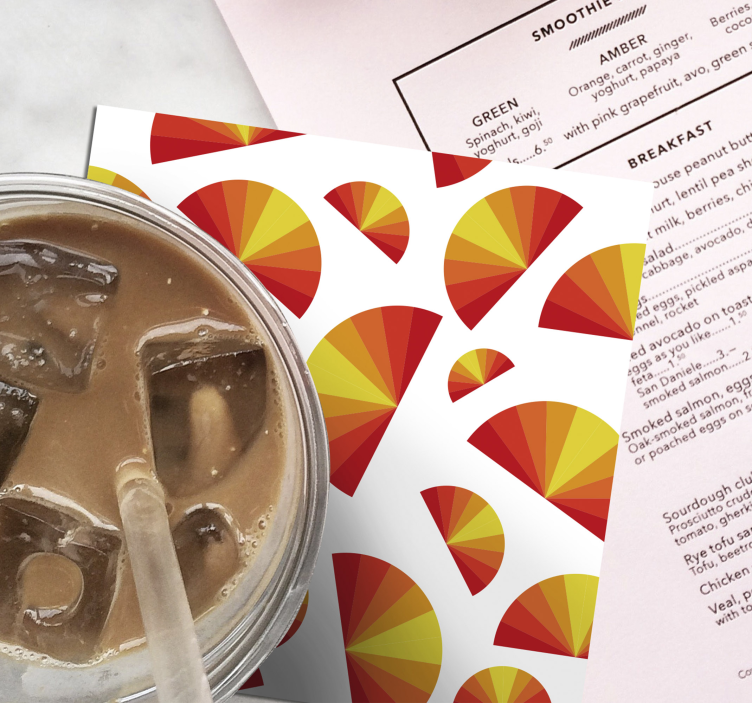 The Geometric fan patterns coaster is a stunning piece that features intricate designs of semicircles and stripes, beautifully representing the sun setting in a vibrant array of colors. Its geometric patterns create a unique texture that adds a touch of artistry to any table setting, making it a perfect conversation starter!