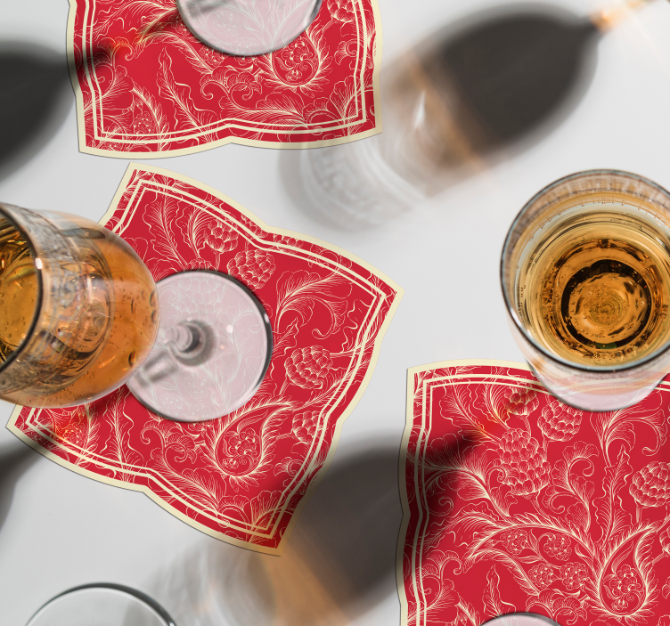 Introducing the stunning Ornate floral pattern coaster, a true masterpiece that combines elegance and artistry. This exquisite design features intricate paisley motifs intertwined with delicate floral elements, all beautifully framed within a captivating pattern. The ornate texture and vibrant red hues elevate the aesthetic appeal, making it an ideal decorative piece for any home. With its luxurious look, this coaster is sure to impress guests and enhance your interior decor!
