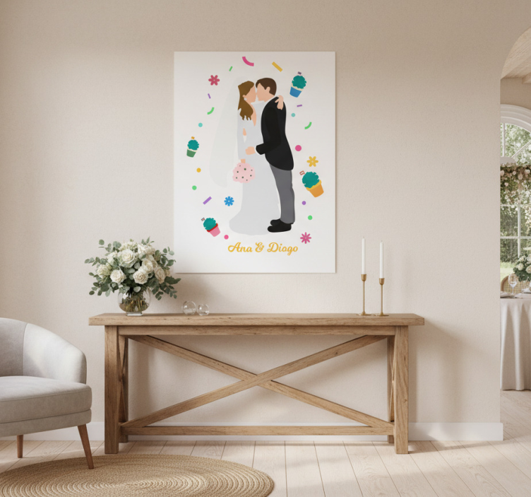 Reference: G1086Introducing our stunning Event poster for "santo antónio" weddings, designed with vibrant colors and an enchanting aesthetic that captures the spirit of celebration. Featuring a semi-matt finish without reflections, this poster boasts a high colour intensity that brings your wedding theme to life. Crafted from 180g/m2 grammage, it is perfect for creating a memorable atmosphere. This unique design is sure to impress your guests and enhance the beauty of your special day!