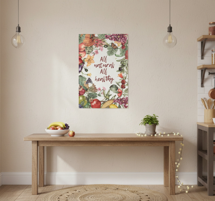 Reference: G634Introducing our stunning Kitchen poster all natural and healthy, designed to elevate your culinary space with its vibrant colors and engaging graphics. This poster features a semi-matt finish that eliminates reflections, ensuring high color intensity that brings life to your kitchen. The 180g/m2 grammage makes it ideal for posters, providing durability and a professional look that complements any décor!