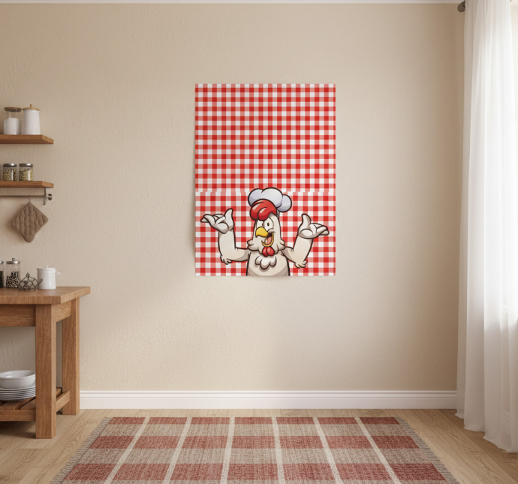 Reference: G645This vibrant Kitchen poster cartoon chicken cook design captures the whimsical charm of a cheerful chicken chef, bringing a delightful touch to your culinary space. Featuring a stunning high colour intensity on a 180g/m2 grammage paper with a semi-matt finish that avoids reflections, this artwork is not just visually appealing but also perfect for any kitchen setting!