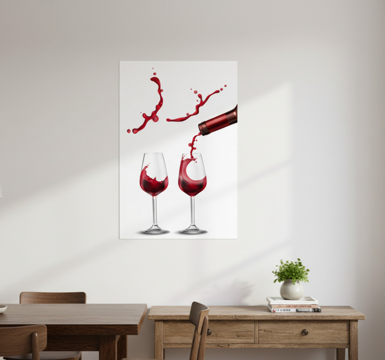 Reference: G653Introducing our stunning Kitchen poster dynamic wine splash, a vibrant piece of art that captures the essence of indulgence and elegance! This poster features high color intensity and a semi-matt finish without reflections, ensuring that every detail pops beautifully on your wall. With a grammage of 180g/m2, it is perfectly suited for posters, making it a delightful addition to any kitchen space.