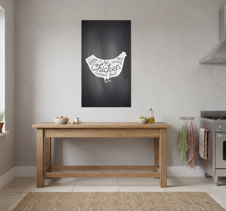 Reference: G649Introducing our stunning Kitchen poster farm fresh chicken, designed to bring a touch of rustic charm to your culinary space! This eye-catching artwork features a semi-matt finish that beautifully eliminates reflections, ensuring the vibrant colors pop in any light. With its 180g/m2 grammage, it's perfect for creating a warm, inviting atmosphere in your kitchen. The high color intensity makes this poster a delightful addition to your home decor, making every meal feel special!