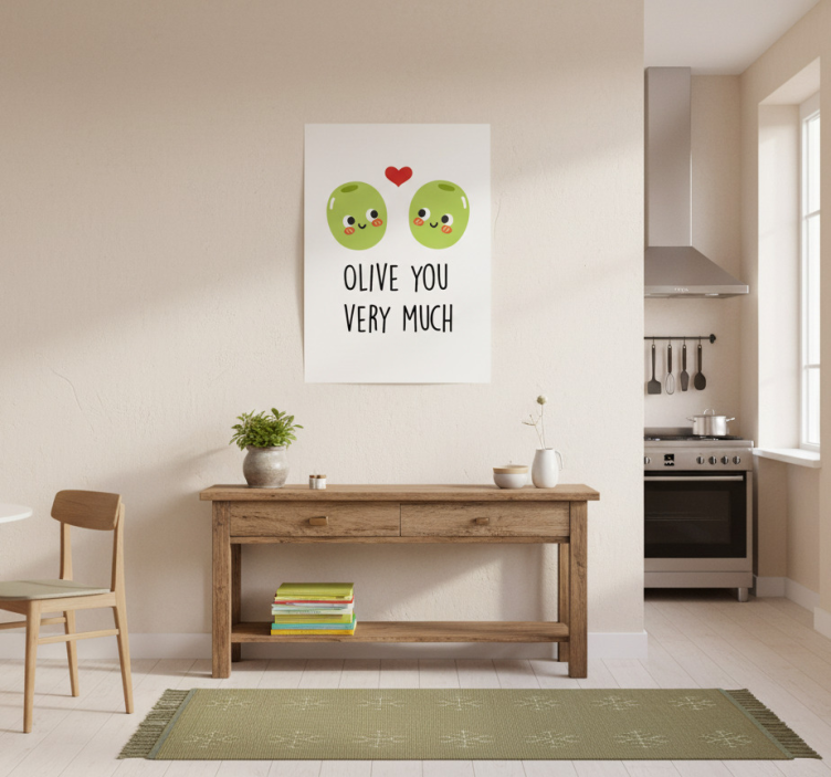 Reference: G629Introducing our delightful Kitchen poster funny quote about olives! This charming poster showcases a playful design that is sure to bring a smile to anyone who enters your kitchen. With its semi-matt finish that ensures no reflections, high colour intensity that pops off the wall, and a sturdy 180g/m2 grammage perfect for posters, this artwork is a striking addition to your culinary space.