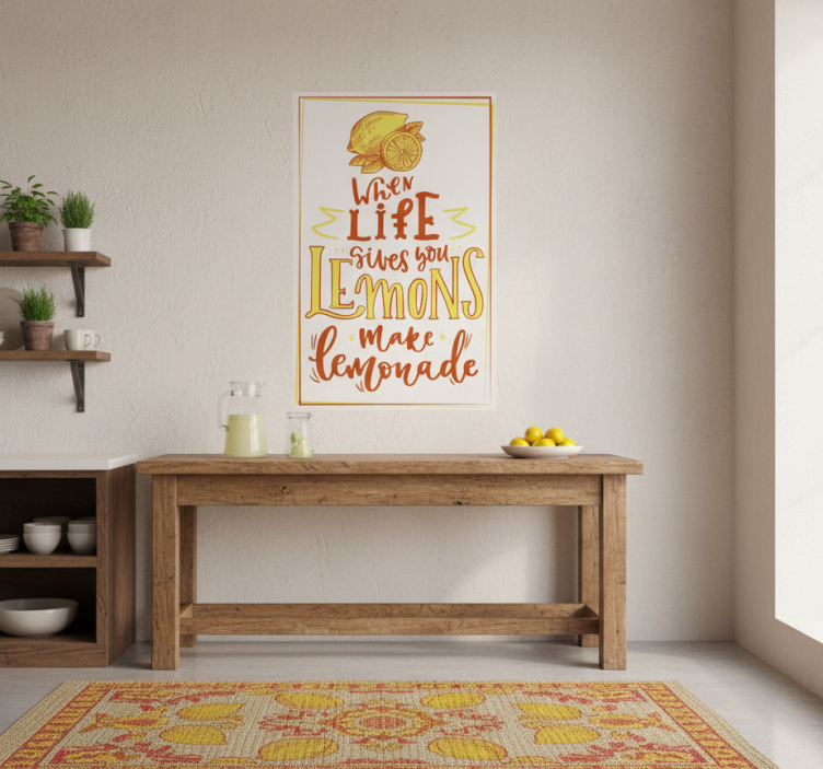 Reference: G591Bring a touch of joy to your kitchen with our vibrant Kitchen poster life is sweet with lemon sketch. This delightful design features a stunning lemon sketch that radiates positivity and zest for life, beautifully crafted on a high-quality 180g/m2 grammage poster. With a semi-matt finish that prevents reflections and enhances the high colour intensity, this artwork is perfect for brightening up any space.
