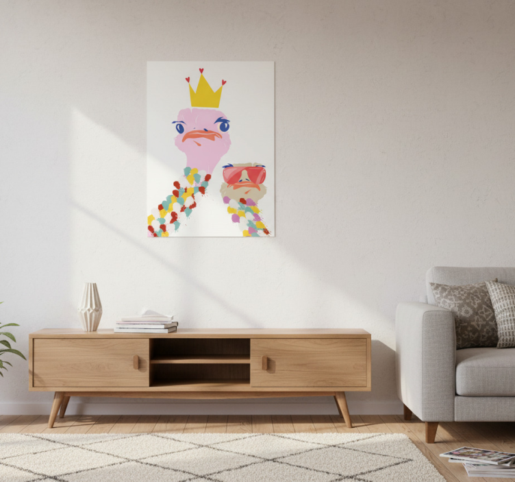Transform your home with our Living room poster colorful ostriches art style living room poster. This delightful artwork not only enhances the aesthetic appeal of your space but also sparks conversation and imagination. With its whimsical design, it invites a sense of happiness and creativity, making it an ideal choice for those looking to uplift their living environment. Let this poster be the centerpiece that inspires joy in your home!