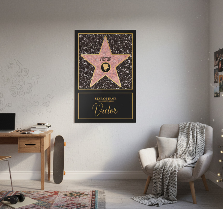 Reference: G759Introducing our stunning Living room poster custom star of fame, designed to elevate your space with its vibrant colors and unique star-themed artwork. This poster features a 180g/m2 grammage that is perfect for posters, along with a semi-matt finish without reflections to ensure high color intensity. Transform your living room into a gallery of inspiration with this eye-catching piece!