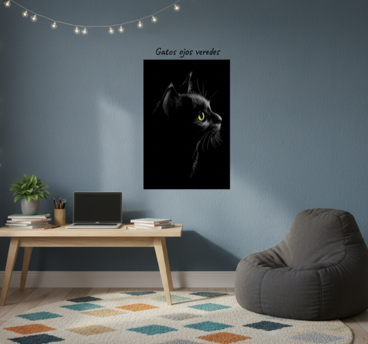 To showcase the Living room poster green-eyed cats wall posters for living room, consider using double-sided adhesive tape for a seamless look. Simply apply strips to the back of the poster and hold firmly for 10 seconds. Alternatively, you can frame it or use thumbtacks and reusable blu-tack for a versatile display.