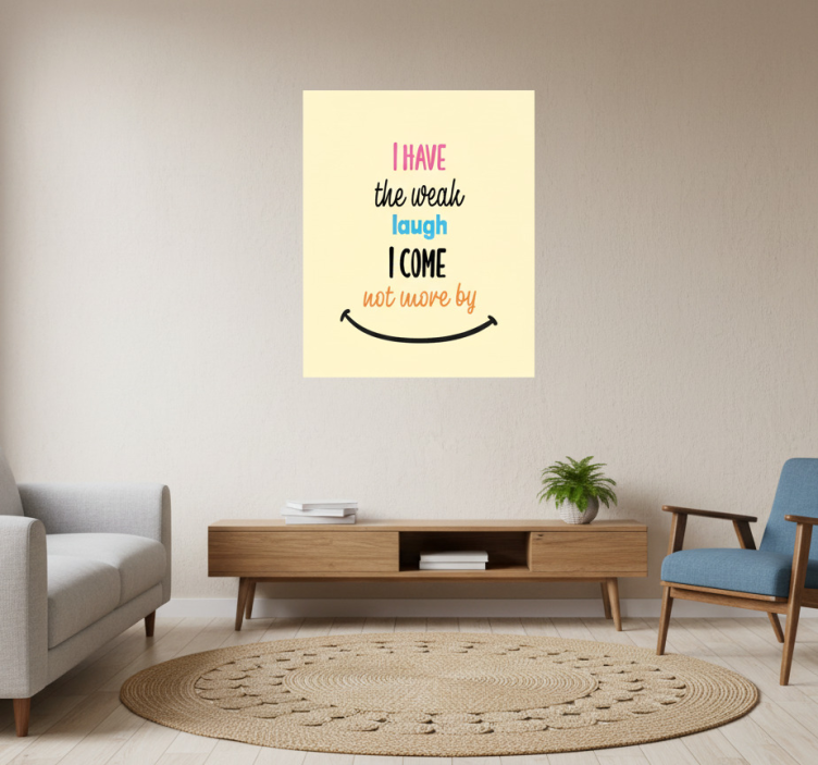 The Living room poster i have a weak laugh living room poster is perfect for anyone looking to infuse their home with character and charm. It serves as a delightful conversation starter, making your living room feel more inviting and warm. Elevate your space with this unique piece that not only decorates but also inspires smiles and positivity every day!