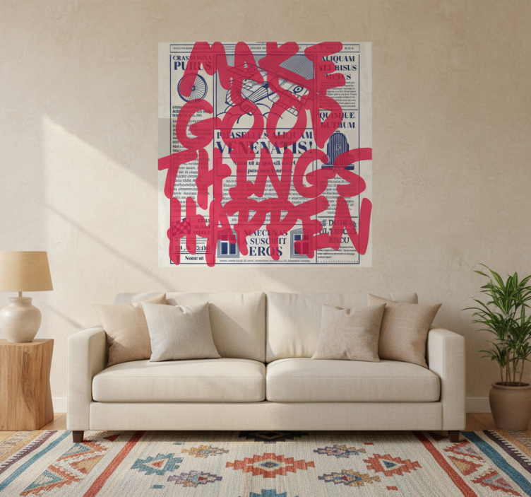 Reference: G812Transform your living space with our Living room poster make good things happen retro design. This vibrant poster features a semi-matt finish that enhances its high color intensity, ensuring it catches the eye without any reflections. Crafted with 180g/m2 grammage, this ideal poster material guarantees durability and quality, making it a stunning addition to any room.