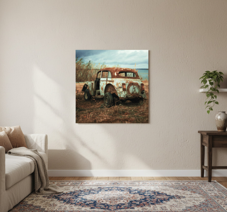 The Living room poster of an old dirty car in the fields living room poster is perfect for those who want to infuse their home with character and nostalgia. This artwork not only serves as a visual focal point but also sparks conversations, inspiring warmth and creativity in your living space. Transform your walls with this beautiful design that evokes memories and adds personality!