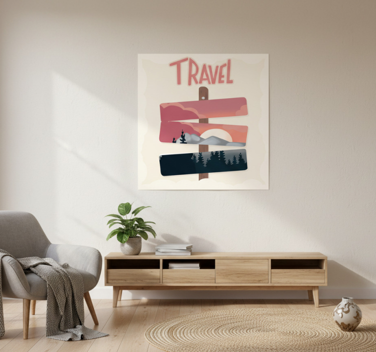 Transform your space with our Living room poster of travel road signs illustration living room poster that inspires wanderlust and adventure! This poster serves as a daily reminder of the beauty of travel, sparking joy and creativity in your living area. Infuse your home with a sense of adventure and let your walls tell stories, creating a warm and inviting atmosphere for friends and family!