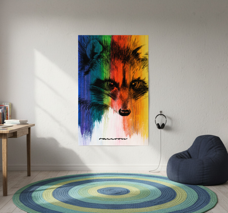 Reference: G790Introducing our stunning Living room poster rainbow raccoon art print, a vibrant and whimsical addition to your home decor! This art print features a delightful raccoon surrounded by a burst of rainbow colors, captivating viewers with its high color intensity and semi-matt finish that eliminates reflections. Printed on quality 180g/m2 paper, this poster is designed to stand out and bring joy to your living space.