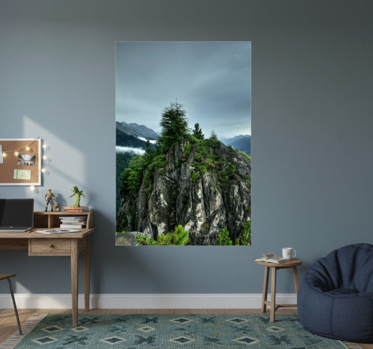 Reference: G793Immerse yourself in the beauty of nature with our Living room poster single rock in green forest. This stunning design features a majestic rock set against a vibrant green forest backdrop, creating a serene and calming atmosphere. The poster is printed on high-quality 180g/m2 grammage paper, ensuring durability and a semi-matt finish that resists reflections while showcasing high colour intensity. Add a touch of tranquility to your space!