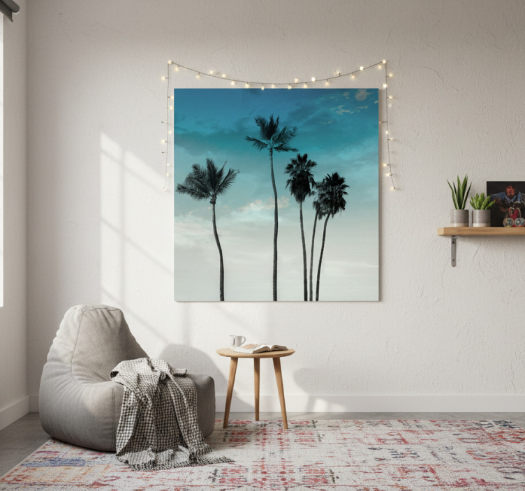 Incorporating the Living room poster with five tall palm trees design living room poster into your decor can elevate the ambiance of your home. Imagine the warmth and tranquility this beautiful piece brings to your space, inspiring relaxation and joy. Perfect for adding a tropical vibe or a calming presence, this poster is an ideal choice for anyone looking to enhance their living area with art that resonates positivity!