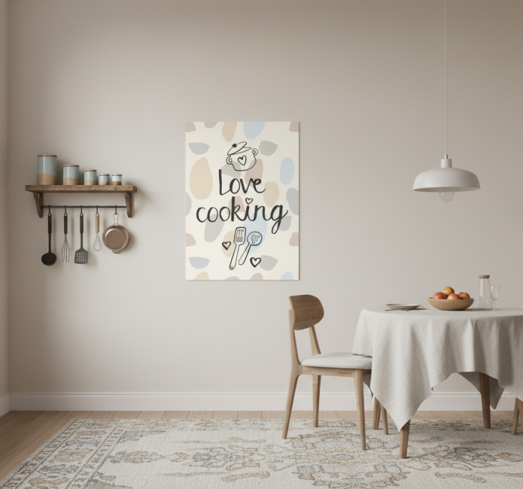 Placing the Love cooking kitchen poster kitchen poster art is a breeze! For optimal results, we recommend using double-sided adhesive tape on the back. Simply stick the strips, press firmly for 10 seconds, and enjoy your new decor! Alternatively, you can frame it for a more polished look, or use thumbtacks and reusable blu-tack for a casual display. Make your kitchen shine with this exquisite poster!