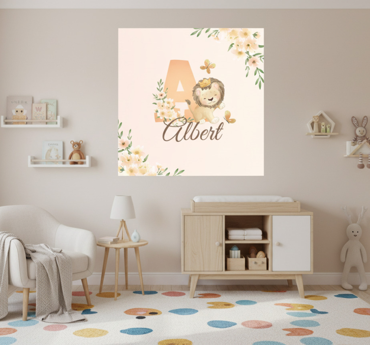 Reference: G956Introducing our stunning Nursery poster cute lioness with name, a delightful addition to your child's room! This beautifully designed poster features a charming lioness that exudes warmth and character. The design showcases a vibrant color palette and an enchanting illustration that captivates the imagination. With a 180g/m2 grammage ideal for posters, a semi-matt finish that eliminates reflections, and high color intensity, this artwork is perfect for brightening up any nursery.