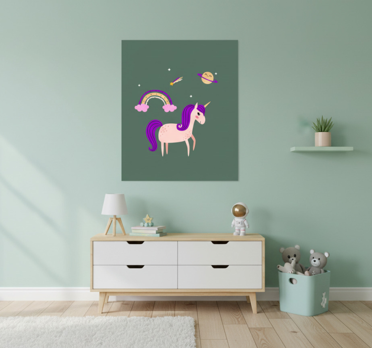 The Nursery poster of artistic unicorns on green nursery poster transforms any room into a fantastical haven! Imagine your little one surrounded by the whimsy of unicorns, sparking their creativity and joy. This charming poster inspires a sense of wonder, making it a perfect addition to nurseries, playrooms, or bedrooms. Elevate your decor with this playful piece that encourages imagination and brings smiles!