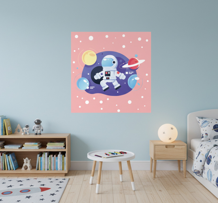 Reference: G905The Nursery poster of cartoon spaceman symbols is a visually captivating addition to any child's room! Featuring vibrant illustrations of adorable spacemen and whimsical celestial elements, this poster combines high colour intensity with a semi-matt finish that eliminates reflections, making it perfect for brightening up your nursery. Crafted with a sturdy 180g/m2 grammage, this poster is designed to withstand the playful energy of children while enhancing their creative space!