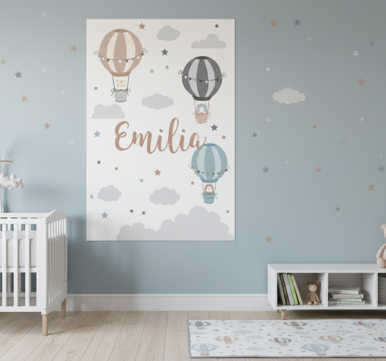 Reference: G943Brighten up your child's room with our stunning Nursery poster with pastel balloons and clouds. This delightful design features whimsical pastel balloons floating among fluffy clouds, creating a serene and joyful atmosphere. The poster is crafted with a 180g/m2 grammage, making it ideal for posters, and has a semi-matt finish that prevents reflections, ensuring high color intensity that will captivate any little one's imagination!