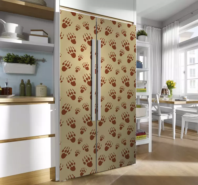 Transform your kitchen into a wildlife sanctuary with our Appliance stickers bear paw prints. This delightful design features charming animal prints, including bear and porcupine tracks. The intricate pattern brings a touch of nature into your home, creating a decorative vibe that enhances your fridge and overall kitchen design. Let your appliances tell a story of adventure and the great outdoors!