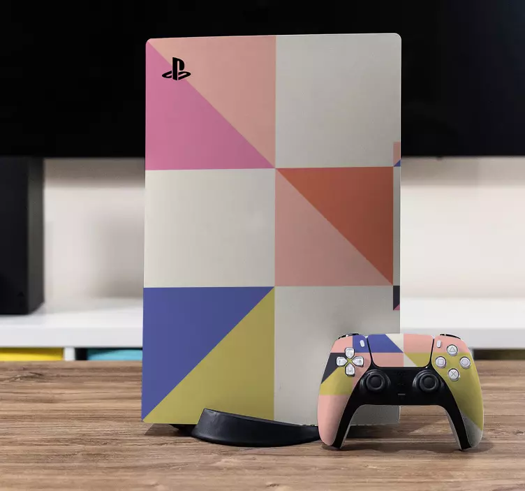 Get this design and enjoy all the unique elements that you can use to customize the look of your console. This product is made with great materials and your satisfaction in mind. Gaming is about having fun and looking great while you do it. This is more than just a simple decoration. Get it now and enjoy the look. You don't have to trust anyone with your console. Apply it by yourself with ease and enjoy the look. This design has triangles of different colors. Get thistriangle PS5 skin with different colors