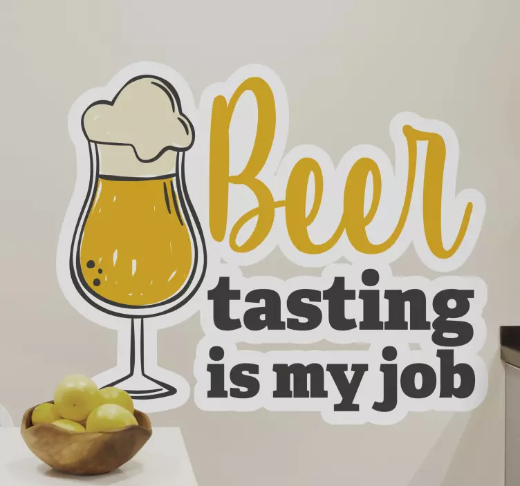 Looking for a fun and unique way to add some character to your kitchen, dining room, or home bar? This beer glass drink decal is the perfect choice for beer lovers who want to show off their passion for the brew. With the clever phrase 'beer tasting is my job,' this decal is a great way to add some humor and personality to your space.