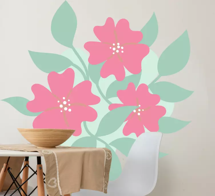 Reference: A48129A vibrant composition featuring delicate pink flowers surrounded by lush green leaves. This fresh design adds a touch of nature to any space, promoting a cheerful and inviting atmosphere.