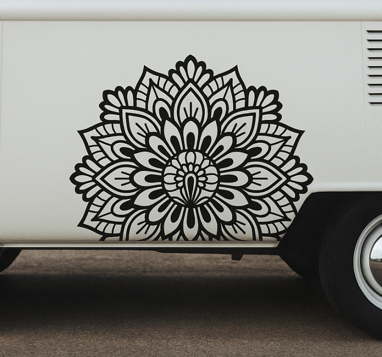 Reference: A54315Introducing our stunning Campervan decal lotus style mandala, a beautiful blend of intricate designs and vibrant colors! This decal features a captivating lotus mandala that brings a sense of tranquility and adventure to your campervan. The elegant curves and detailed patterns create a visually appealing focal point, making it perfect for those who wish to express their unique style on the road.
