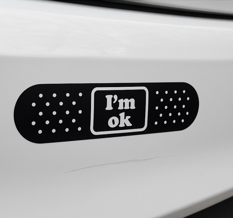 Reference: A53900Introducing the Car sticker "i'm okay" band-aid, a delightful addition to your vehicle's decor! This charming design features a playful band-aid motif, infused with a vibrant color palette that instantly brightens your day and brings a smile to everyone who sees it. Made from high-quality vinyl, this sticker is not only visually appealing but also durable, ensuring it stands out in both interior and exterior settings.