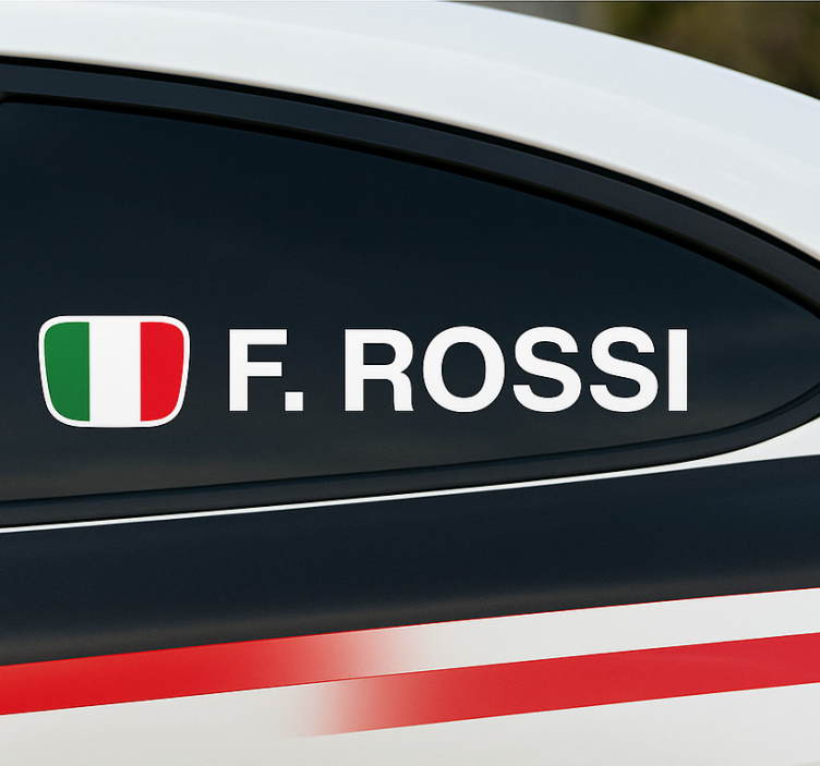Reference: A54619Introducing our stunning Car sticker personalised name design italian flag! This eye-catching design features a vibrant Italian flag background with your custom name beautifully integrated into the artwork, making it a unique expression of your personality. The combination of bright colors and personalized elements ensures that your vehicle stands out from the crowd, bringing a touch of Italian flair wherever you go!